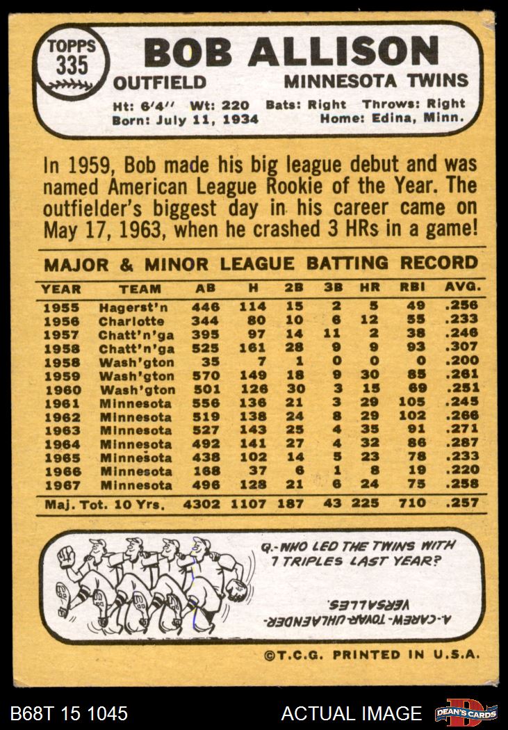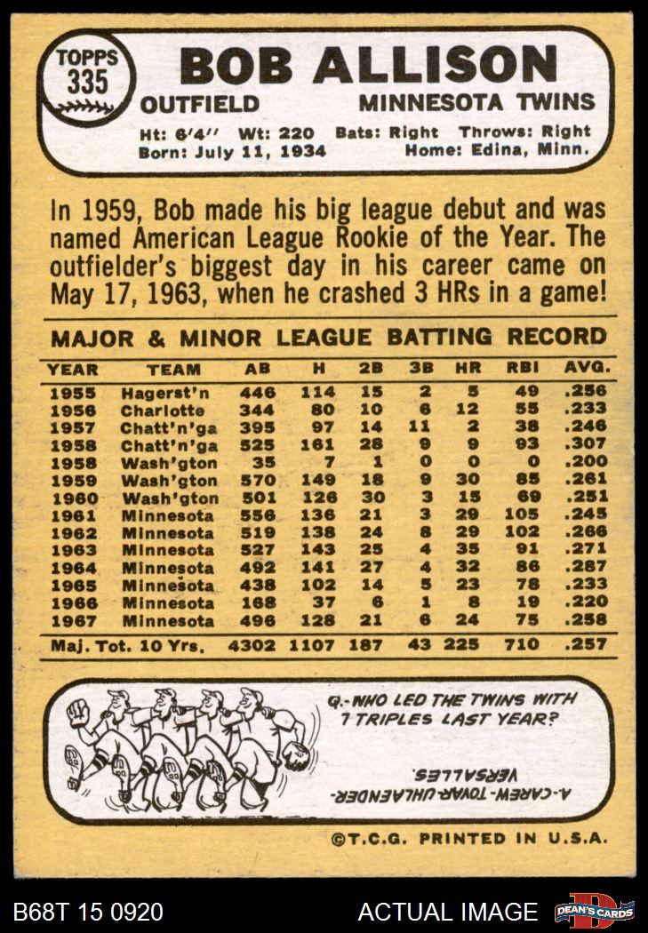 1968 Topps #335 Bob Allison 6 - EX/MT