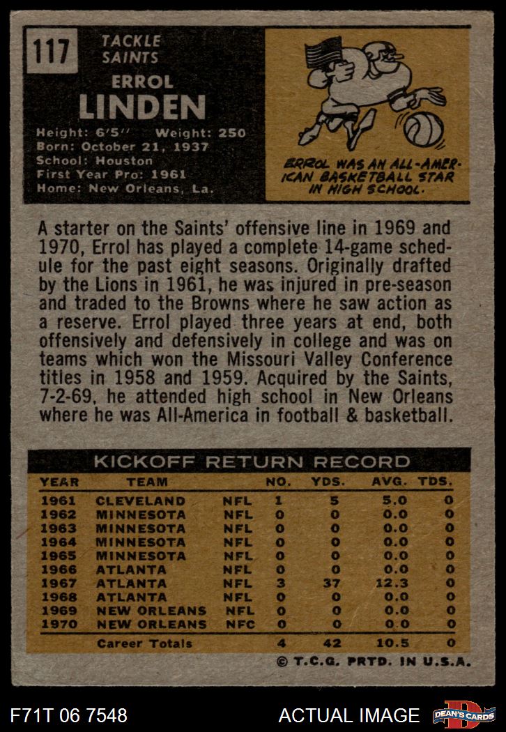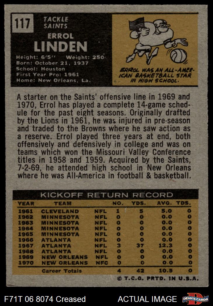 1971 Topps Football Cards (5,362 available)1971 Topps Saints (259 available)