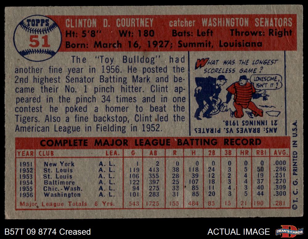 1957 Topps #51 Clint Courtney 3.5 - VG+