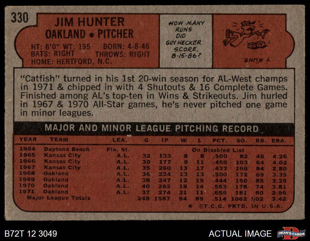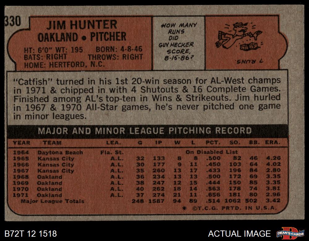 1972 Topps #330 Catfish Hunter 2 - GOOD