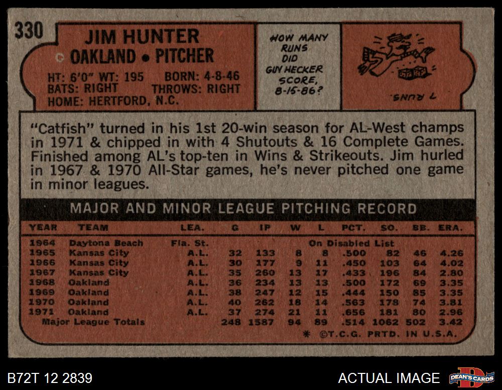 1972 Topps #330 Catfish Hunter 3.5 - VG+