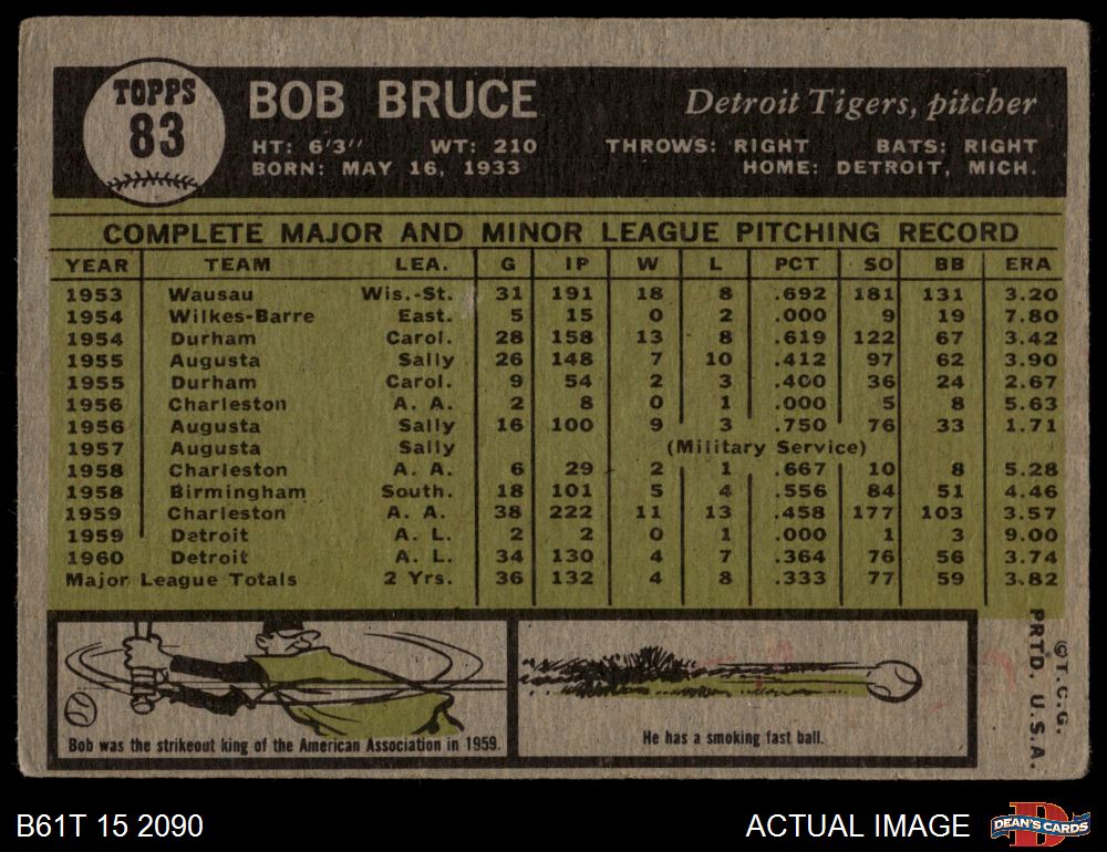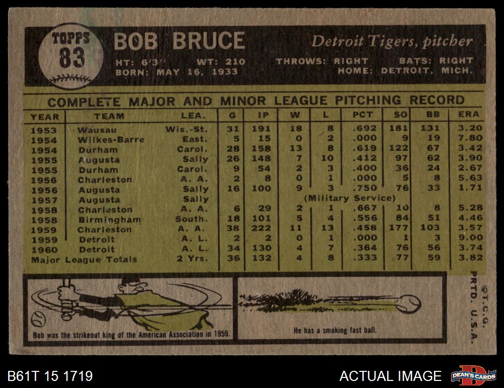 1961 Topps #83 Bob Bruce 2 - GOOD