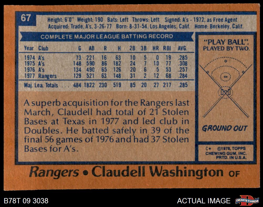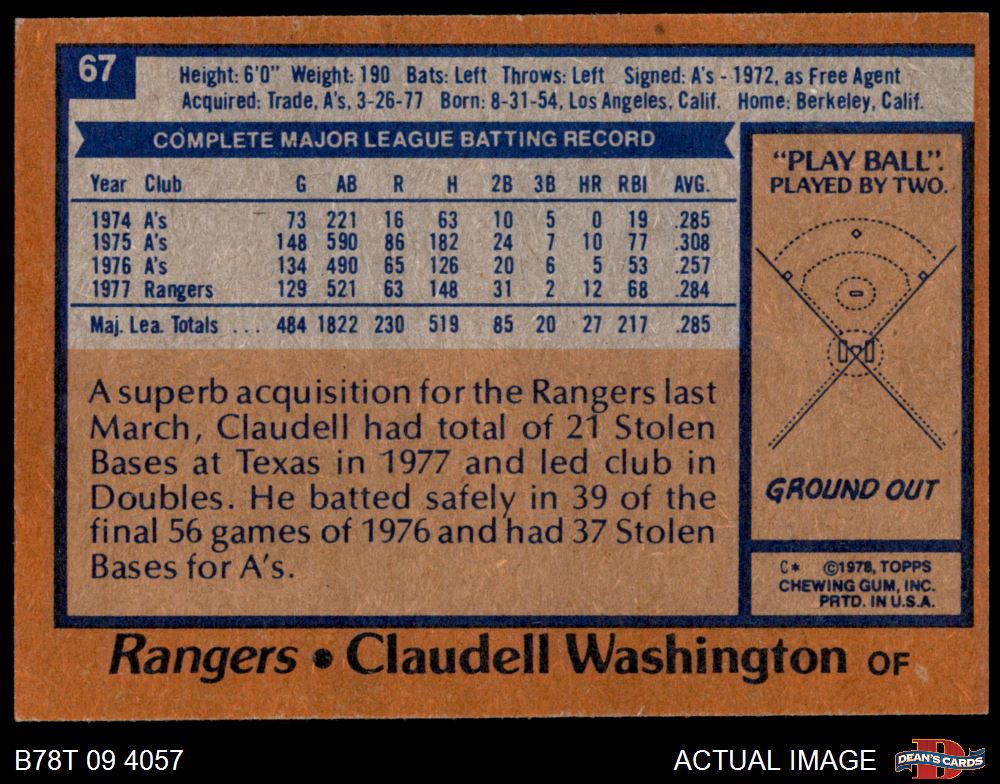 1978 Topps #67 Claudell Washington