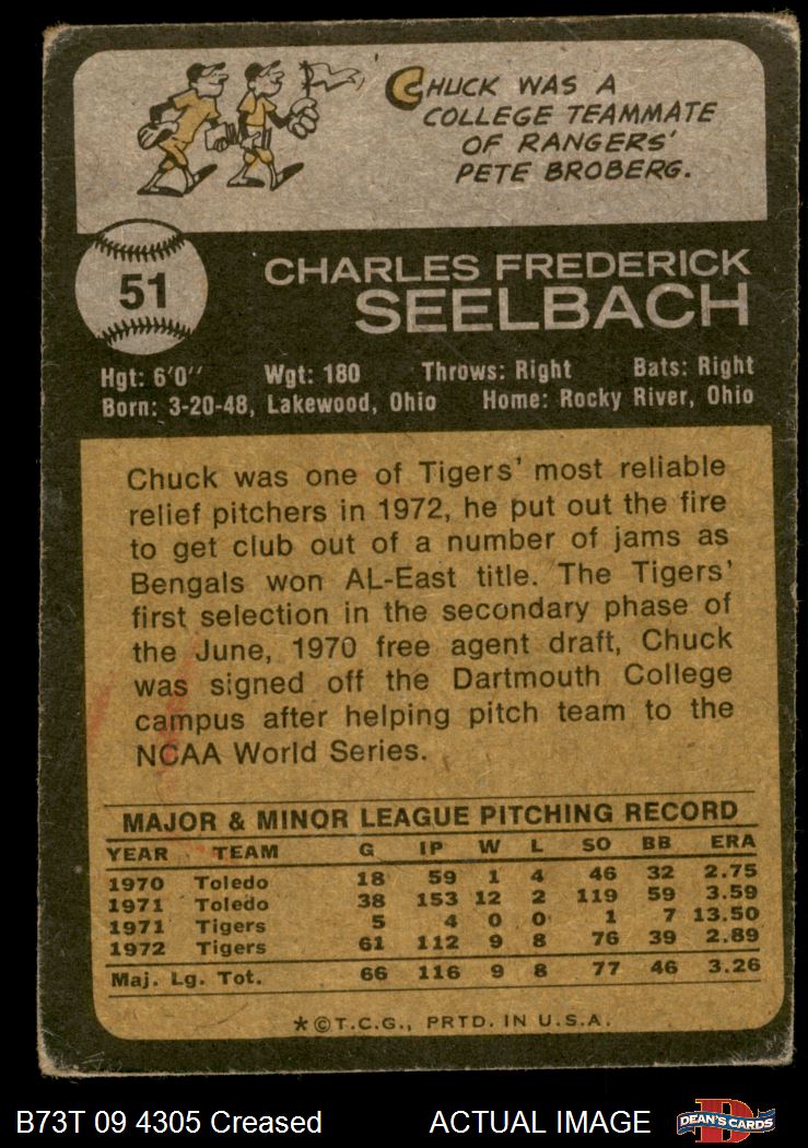 1973 Topps #51 Chuck Seelbach 1.5 - FAIR