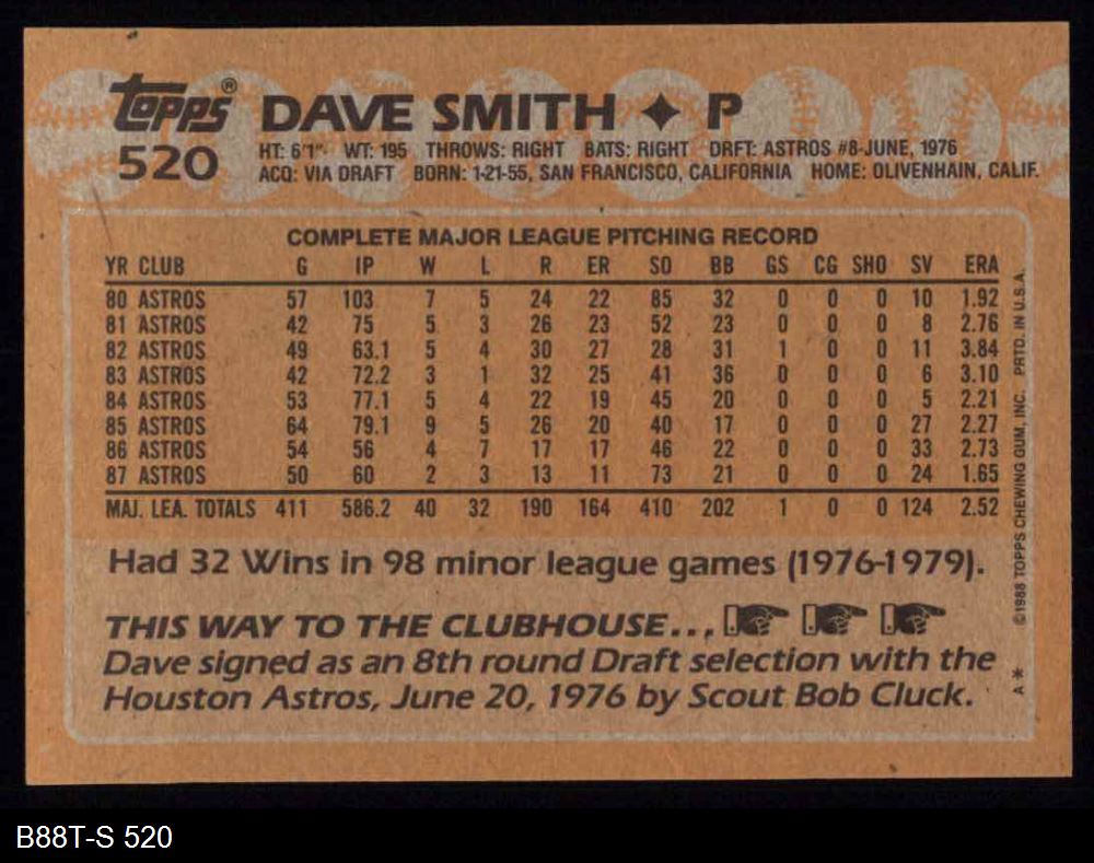 1988 Topps #520 Dave Smith