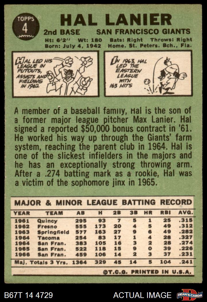 1967 Topps #4 Hal Lanier 4 - VG/EX