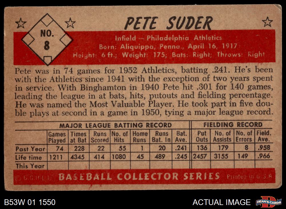 1953 Bowman B&W #8 Pete Suder 3 - VG