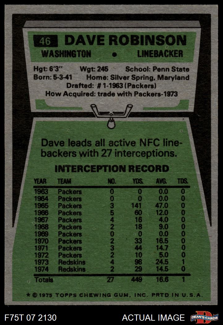 1975 Topps #46 Dave Robinson 7 - NM