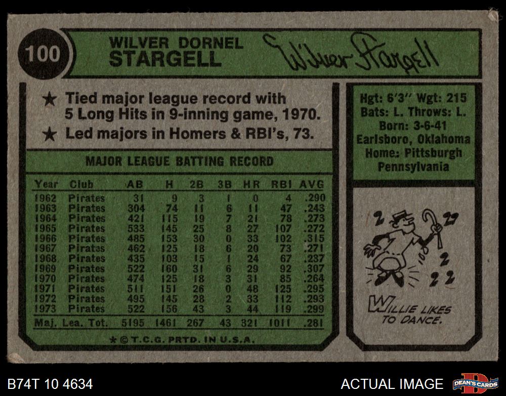 1974 Topps #100 Willie Stargell 2 - GOOD