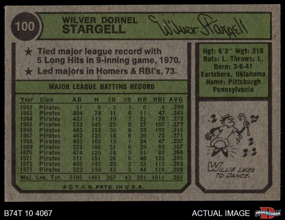 1974 Topps #100 Willie Stargell 4 - VG/EX
