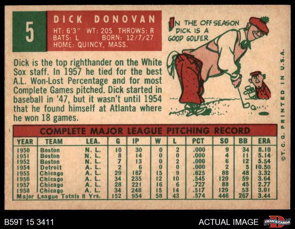 1959 Topps #5 Dick Donovan 4 - VG/EX