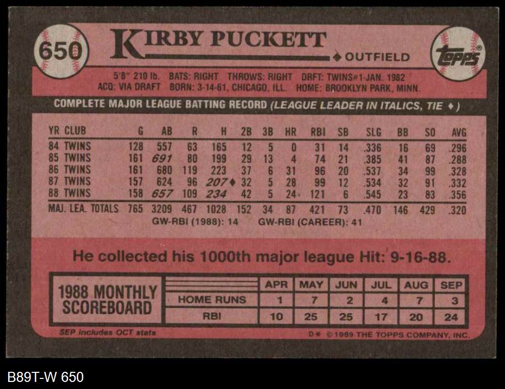 1989 Topps #650 Kirby Puckett