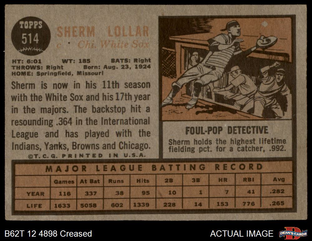 1962 Topps #514 Sherm Lollar 2 - GOOD