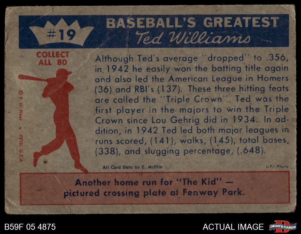 1959 Fleer #19 - Ted Williams Wins the Triple Crown 1 - POOR