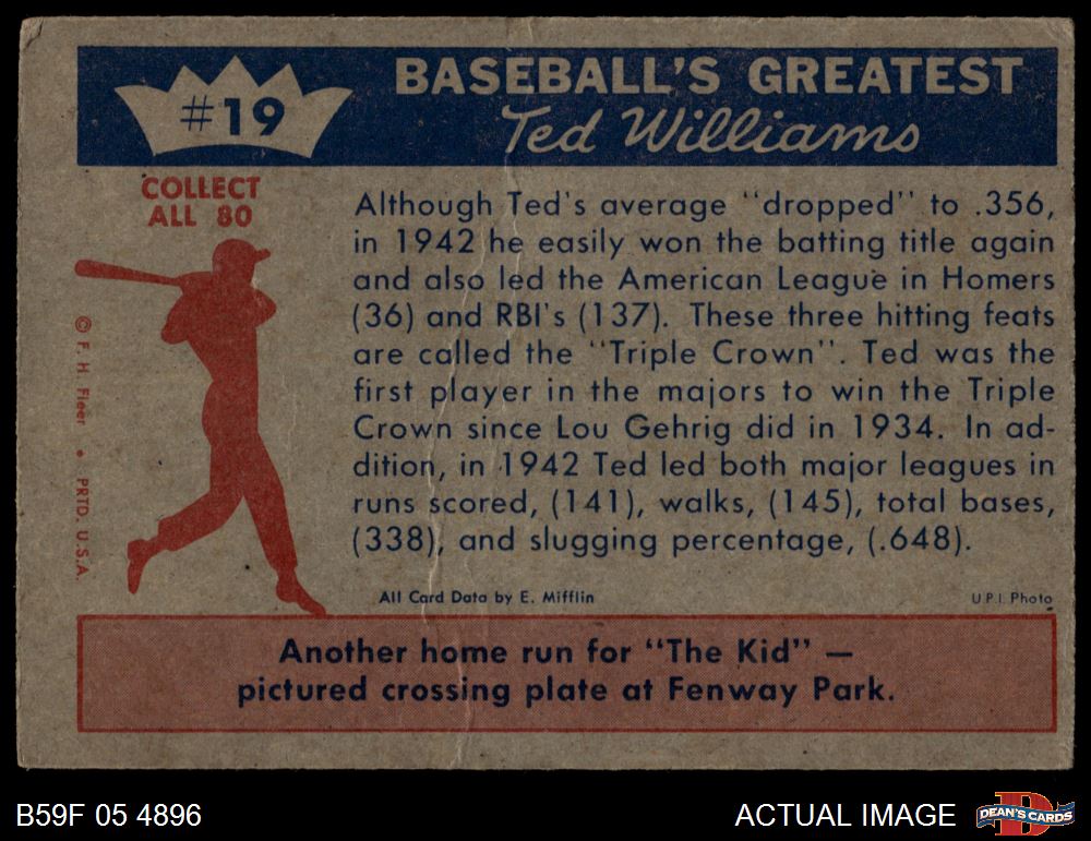 1959 Fleer #19 - Ted Williams Wins the Triple Crown 2 - GOOD