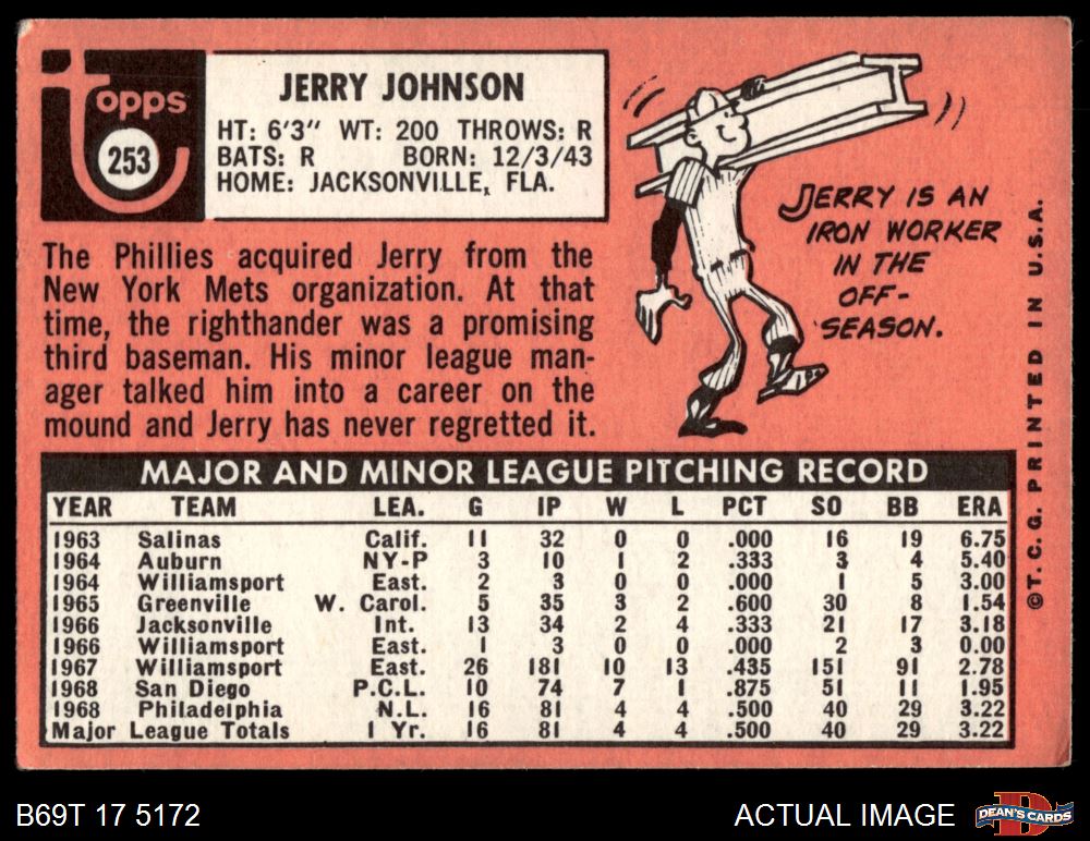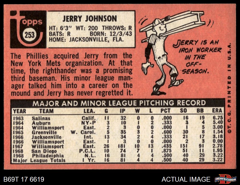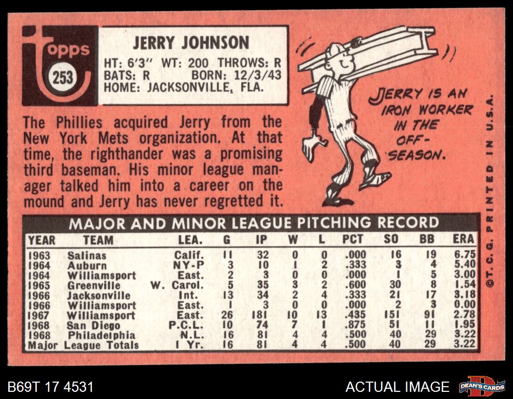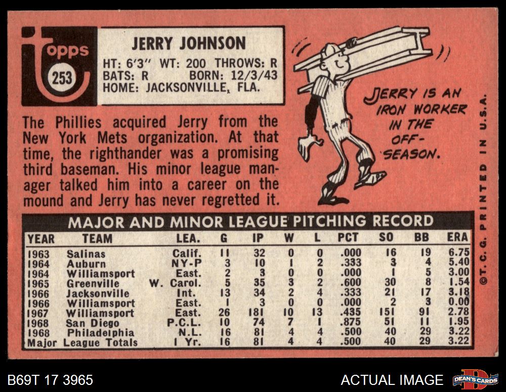 1969 Topps #253 Jerry Johnson