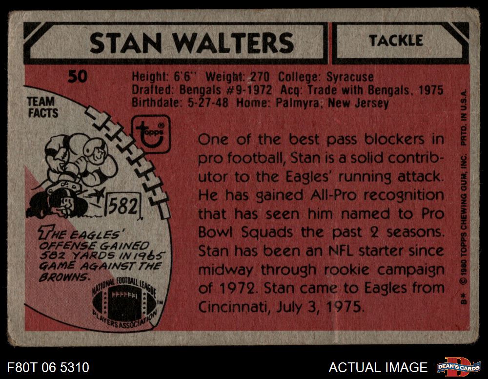 1980 Topps #50 - Stan Walters All-Pro 1 - POOR