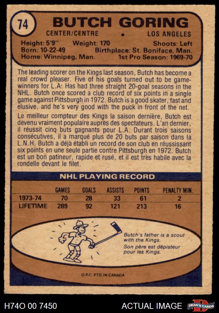 1974 O-Pee-Chee NHL #74 Butch Goring