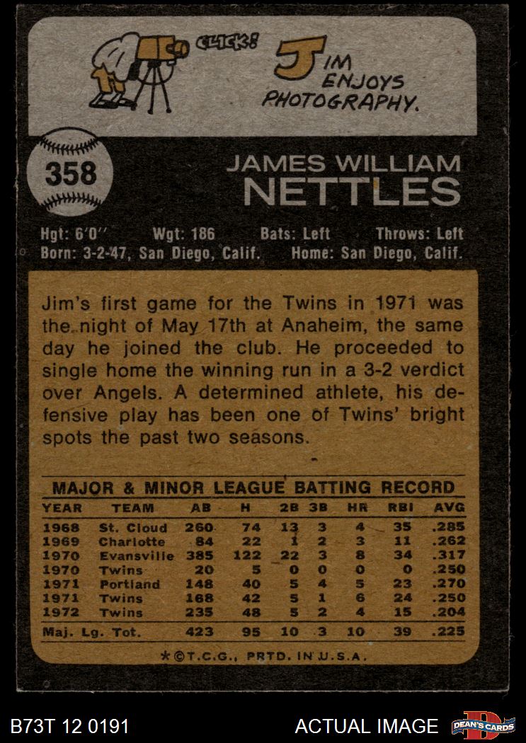 1973 Topps #358 Jim Nettles 4 - VG/EX