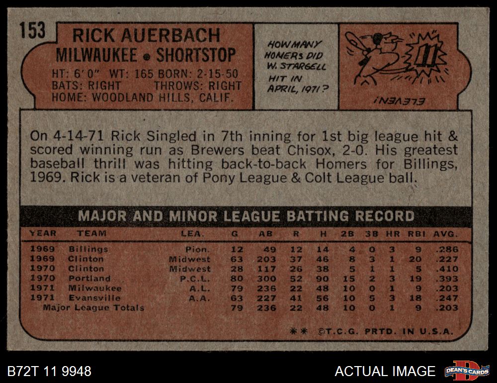 1972 Topps #153 Rick Auerbach 4 - VG/EX