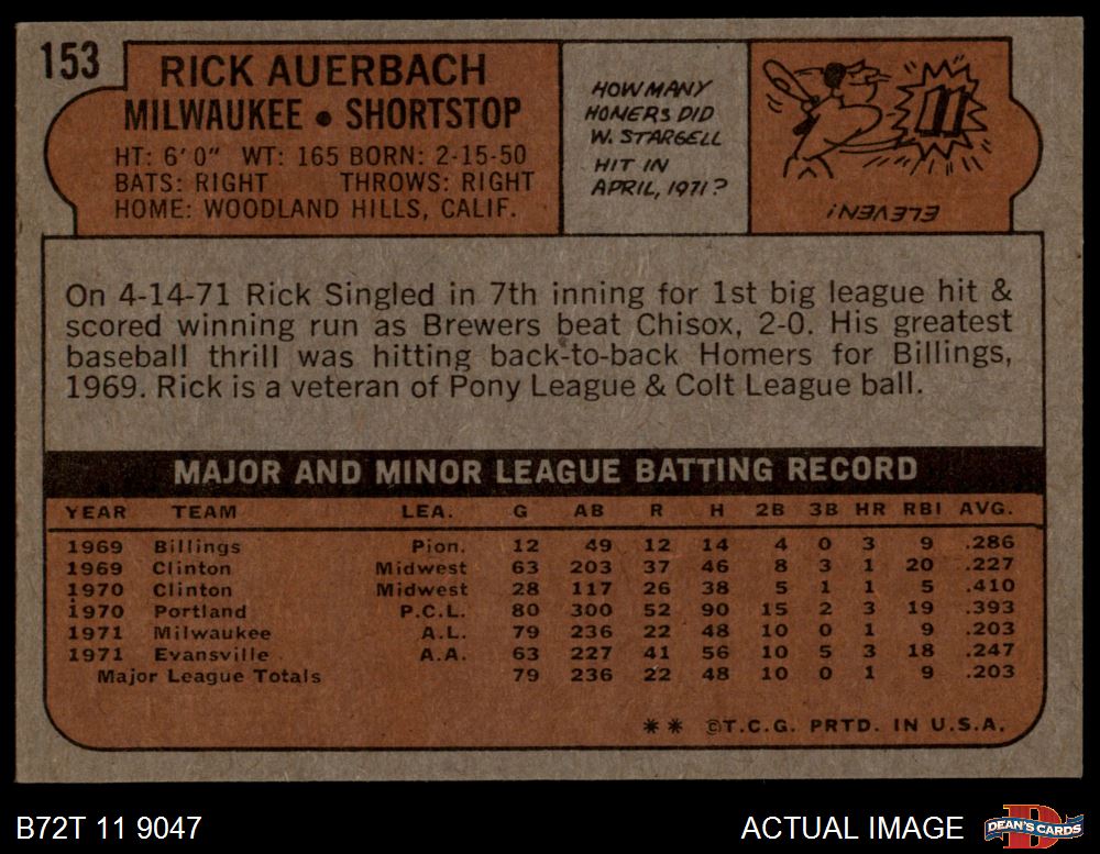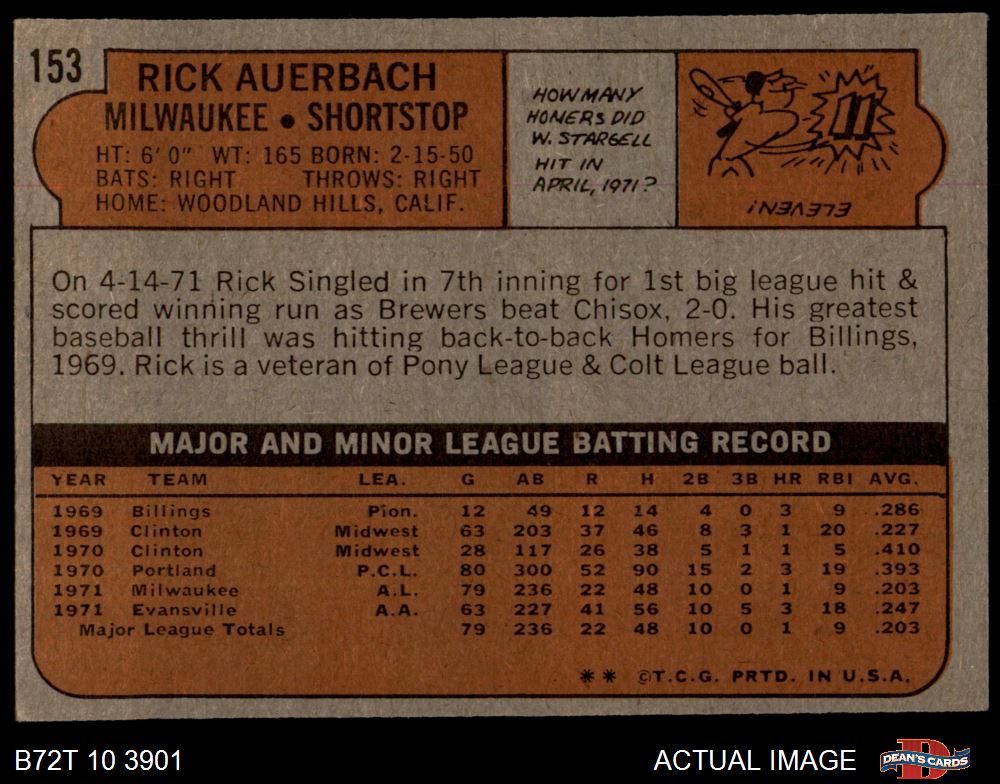 1972 Topps #153 Rick Auerbach 5.5 - EX+