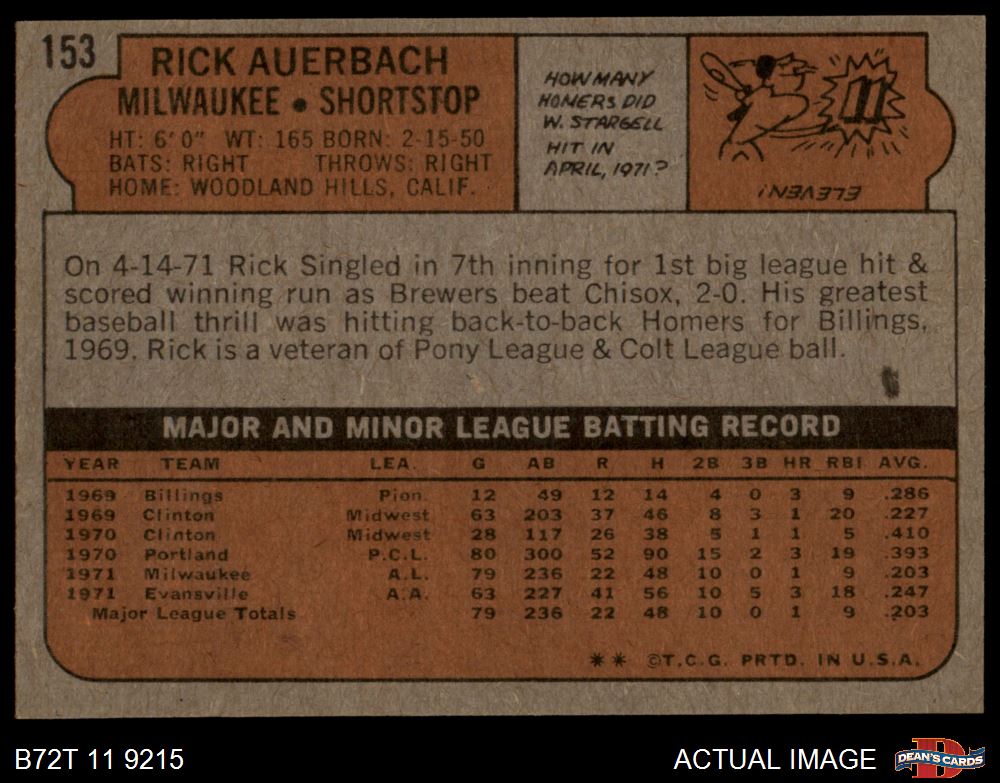 1972 Topps #153 Rick Auerbach 6 - EX/MT