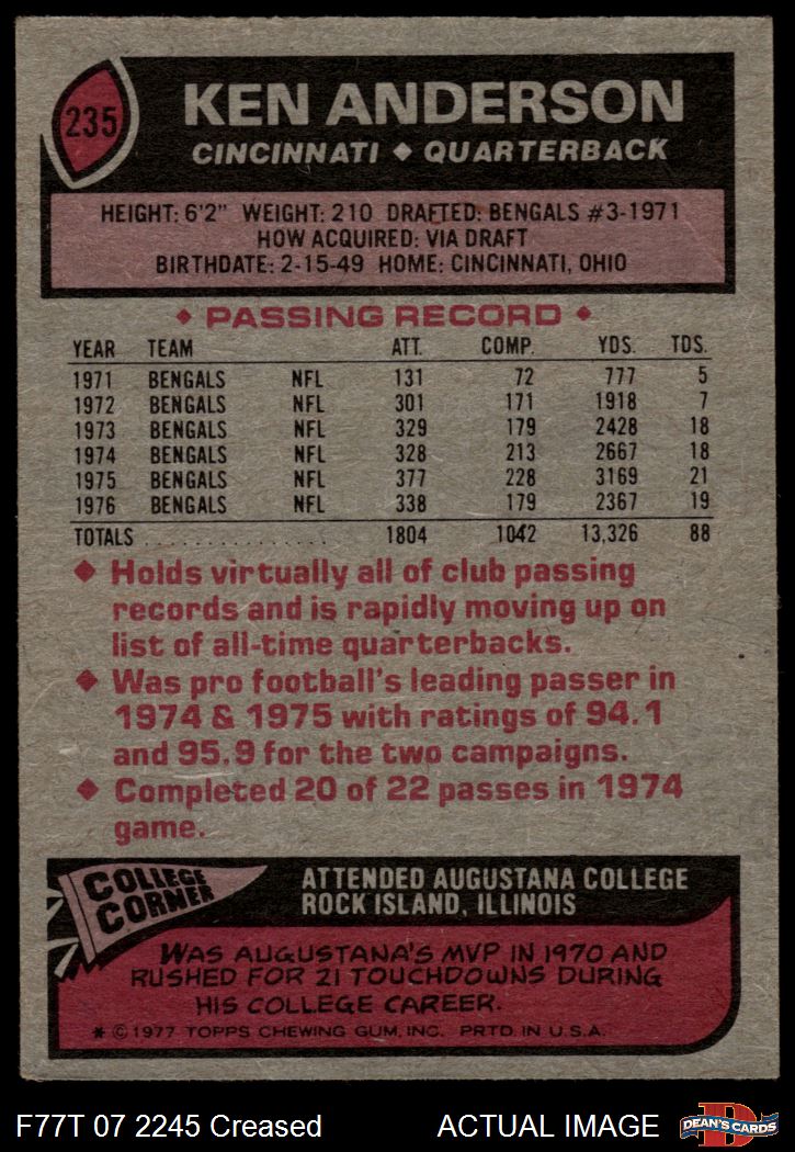 1977 Topps #235 Ken Anderson 3 - VG