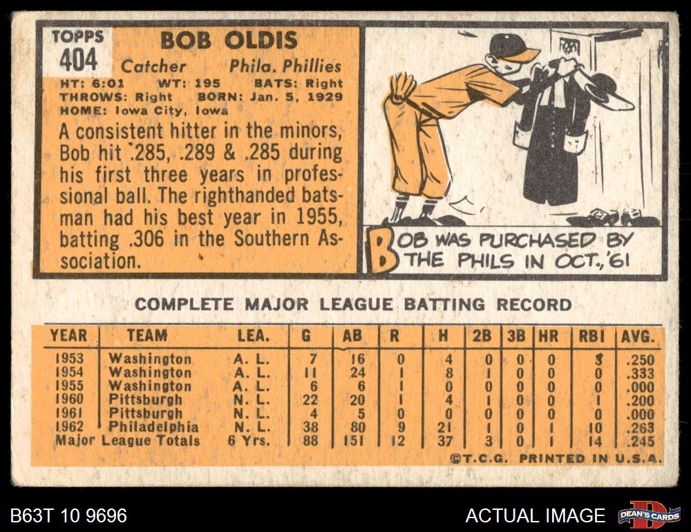 1963 Topps #404 Inset picture is centered or right of center Bob Oldis 3 - VG