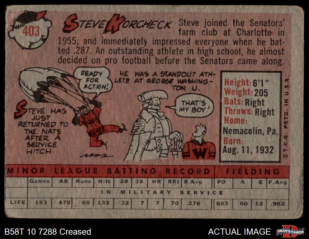 1958 Topps #403 Steve Korcheck 1 - POOR