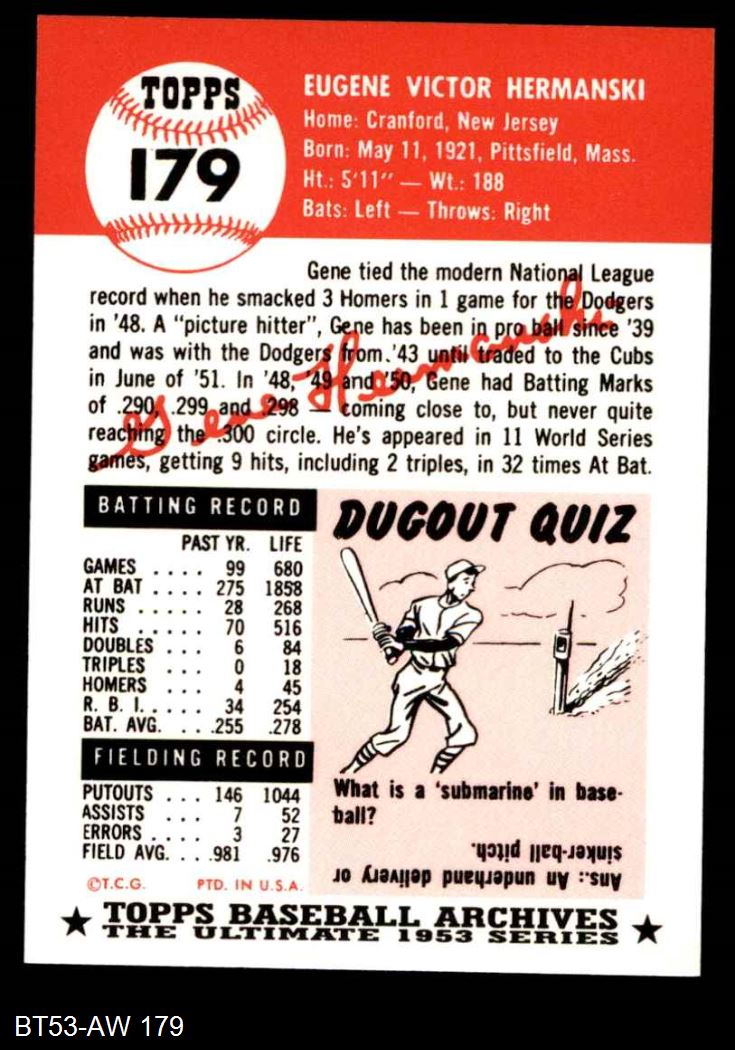 1953 Topps Archives #179 Gene Hermanski 8 - NM/MT