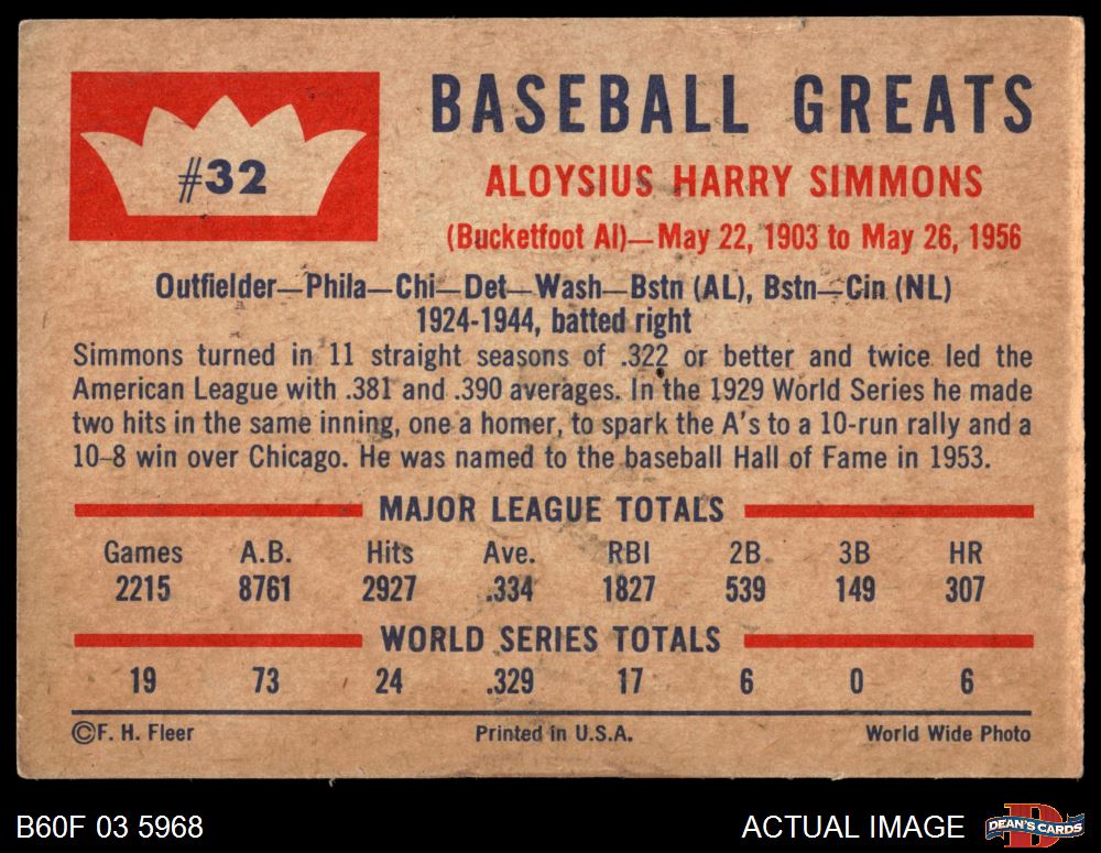 1960 Fleer #32 Al Simmons 2 - GOOD
