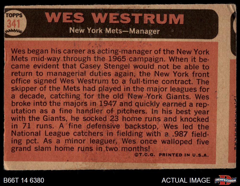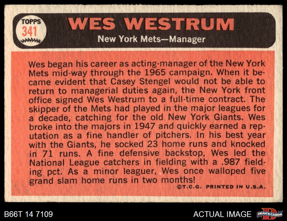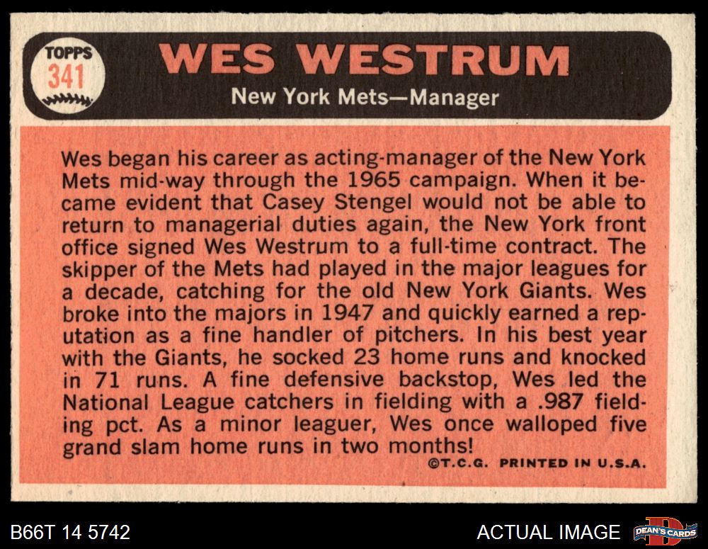 1966 Topps #341 Wes Westrum