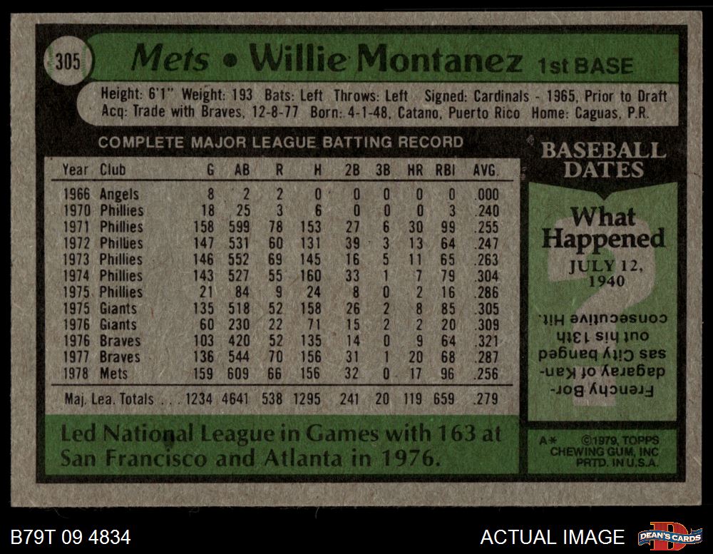 1979 Topps #305 Willie Montanez 6 - EX/MT