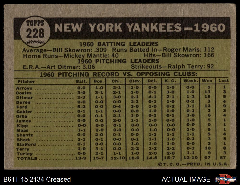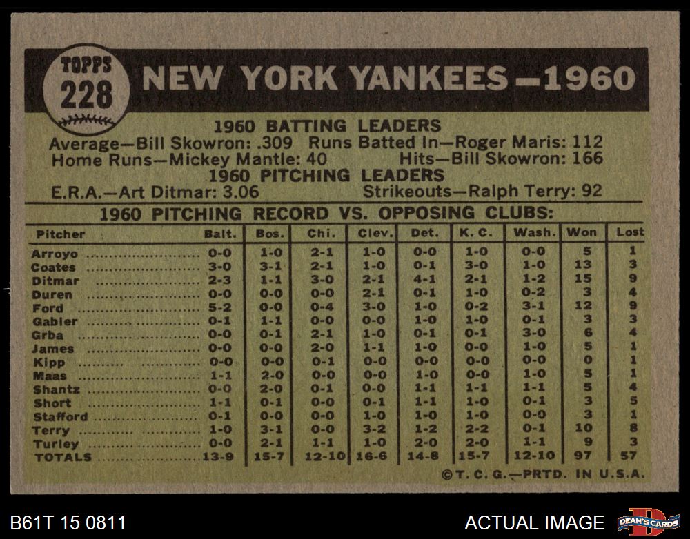 1961 Topps #228 Yankees Team 1.5 - FAIR