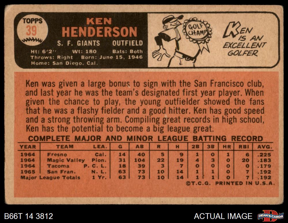 1966 Topps #39 Ken Henderson 1 - POOR