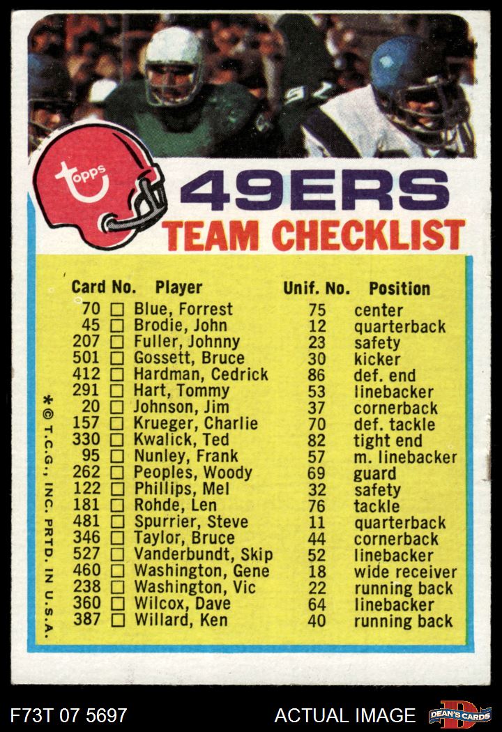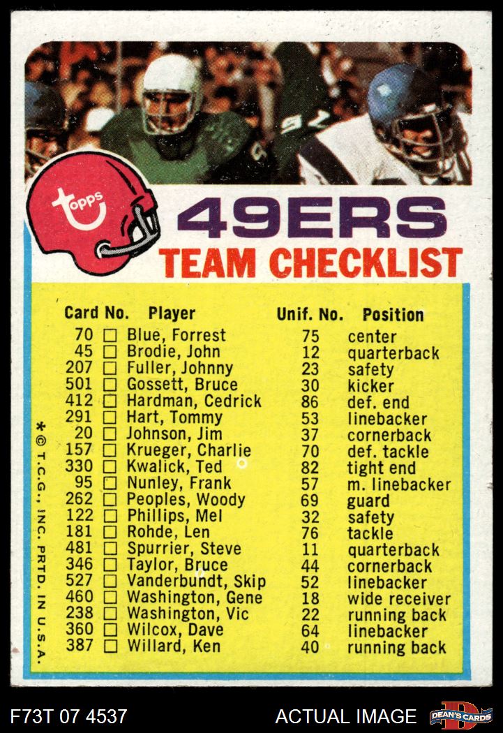 1973 Topps Football Cards (12,924 available)1973 Topps Checklist 49ers (8 available)
