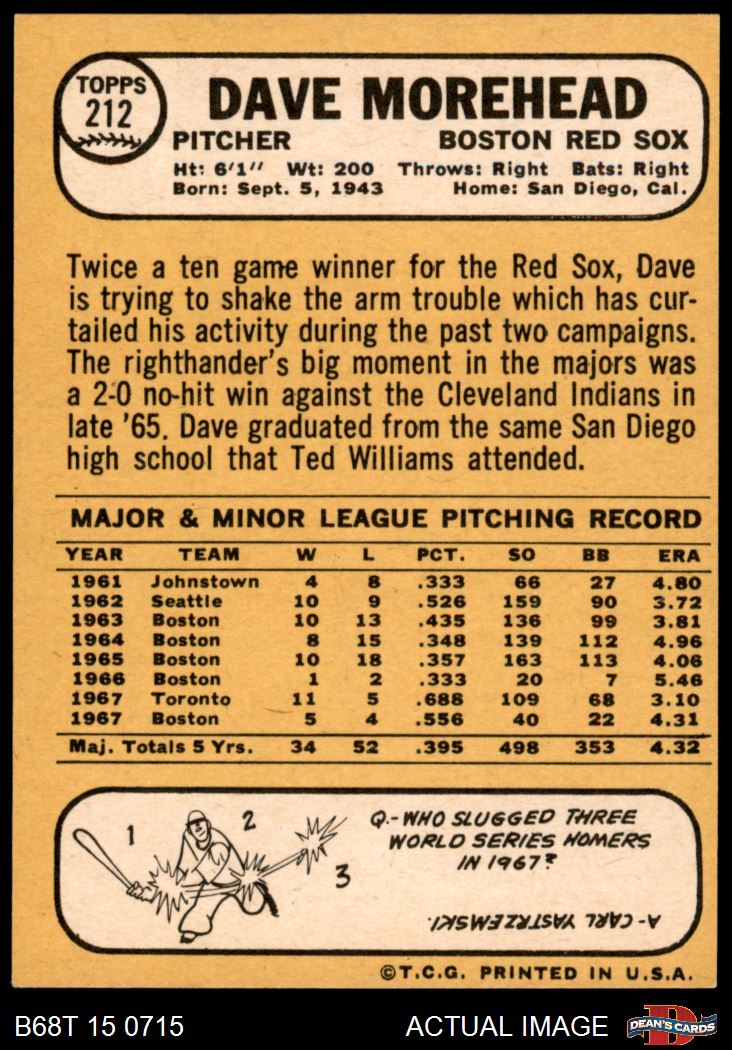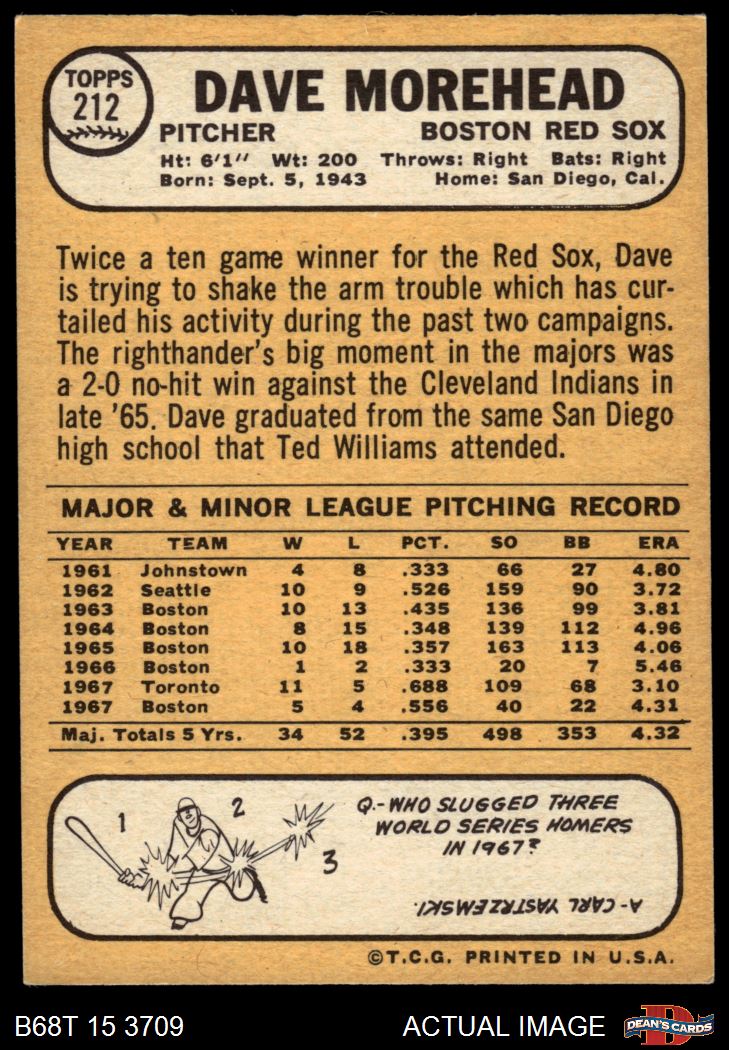 1968 Topps #212 Dave Morehead