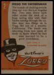 1958 Topps Zorro #2 Diego The Swordsman