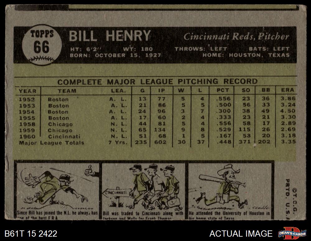 1961 Topps #66 Bill Henry 2.5 - GD+