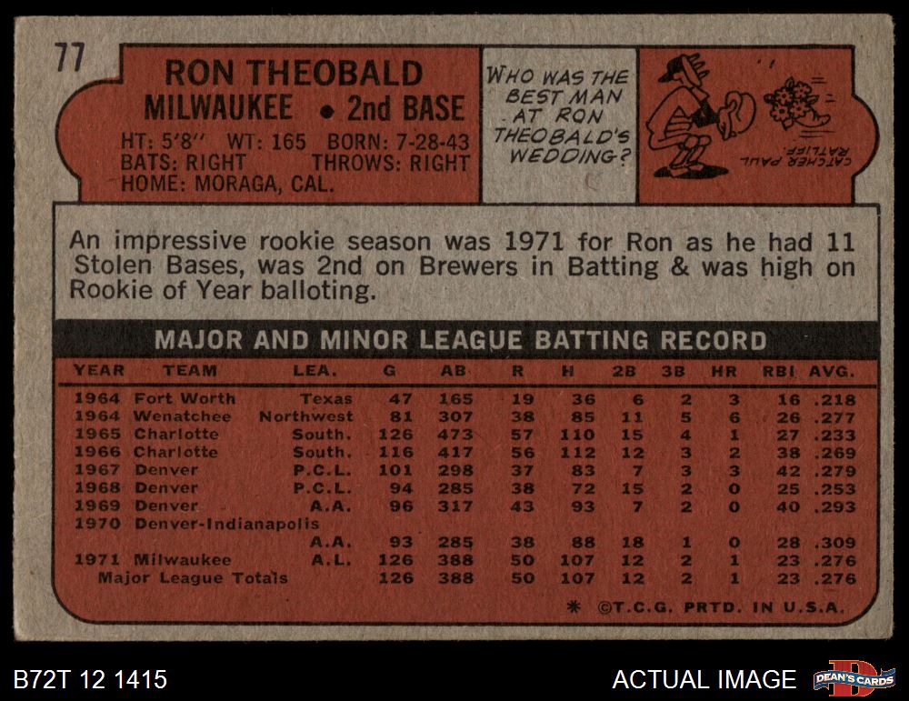 1972 Topps #77 Ron Theobald 2 - GOOD