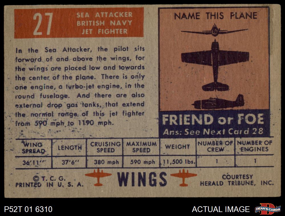 1952 Topps Wings #27 Sea Attacker 4 - VG/EX