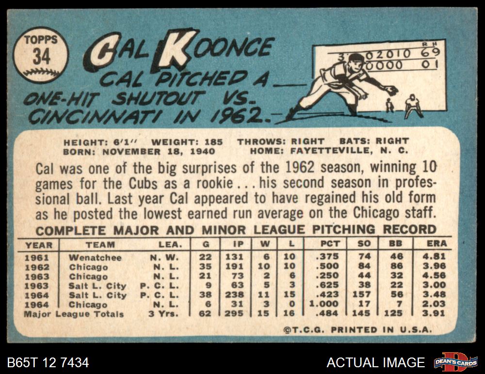 1965 Topps #34 Cal Koonce 2 - GOOD