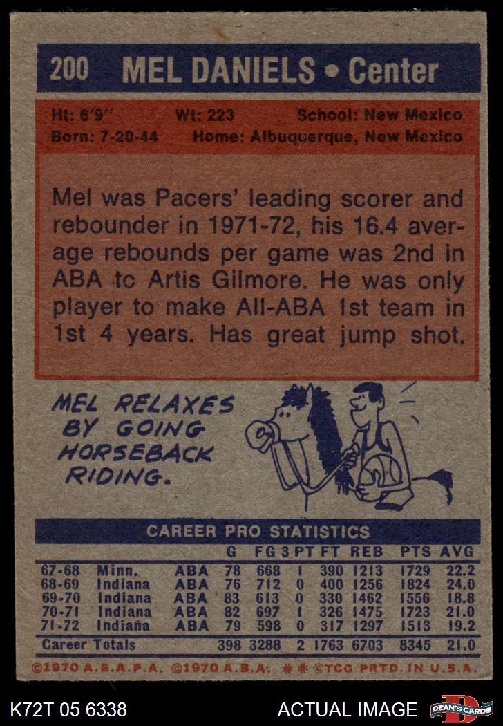 1972 Topps #200 Mel Daniels 4 - VG/EX