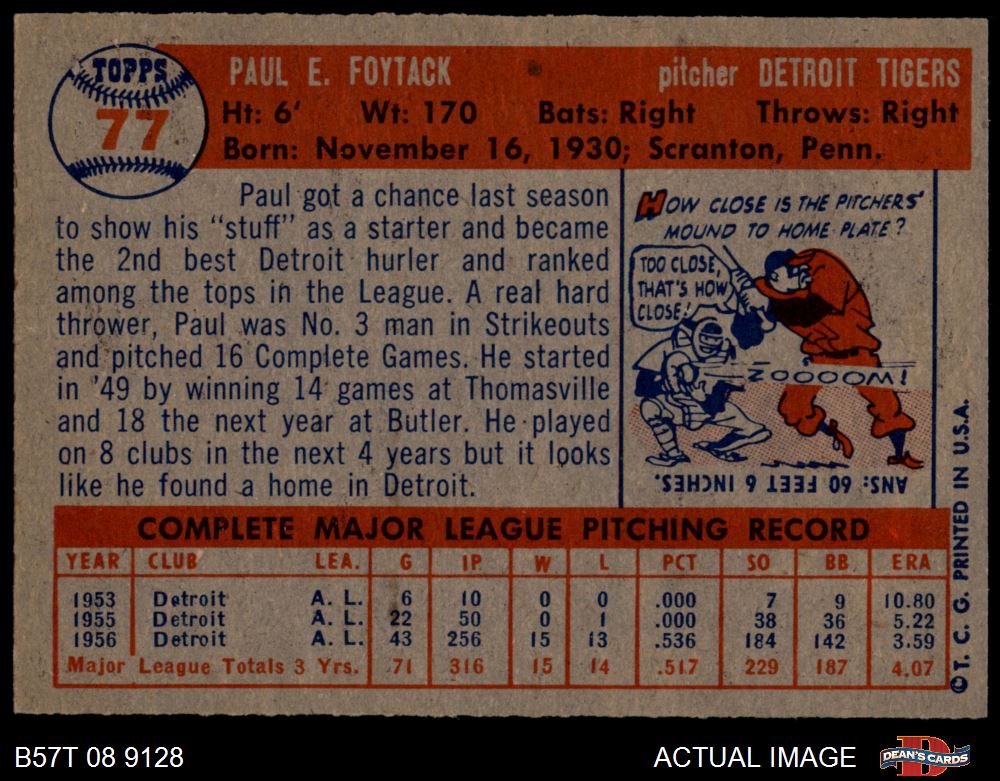 1957 Topps #77 Paul Foytack 6 - EX/MT
