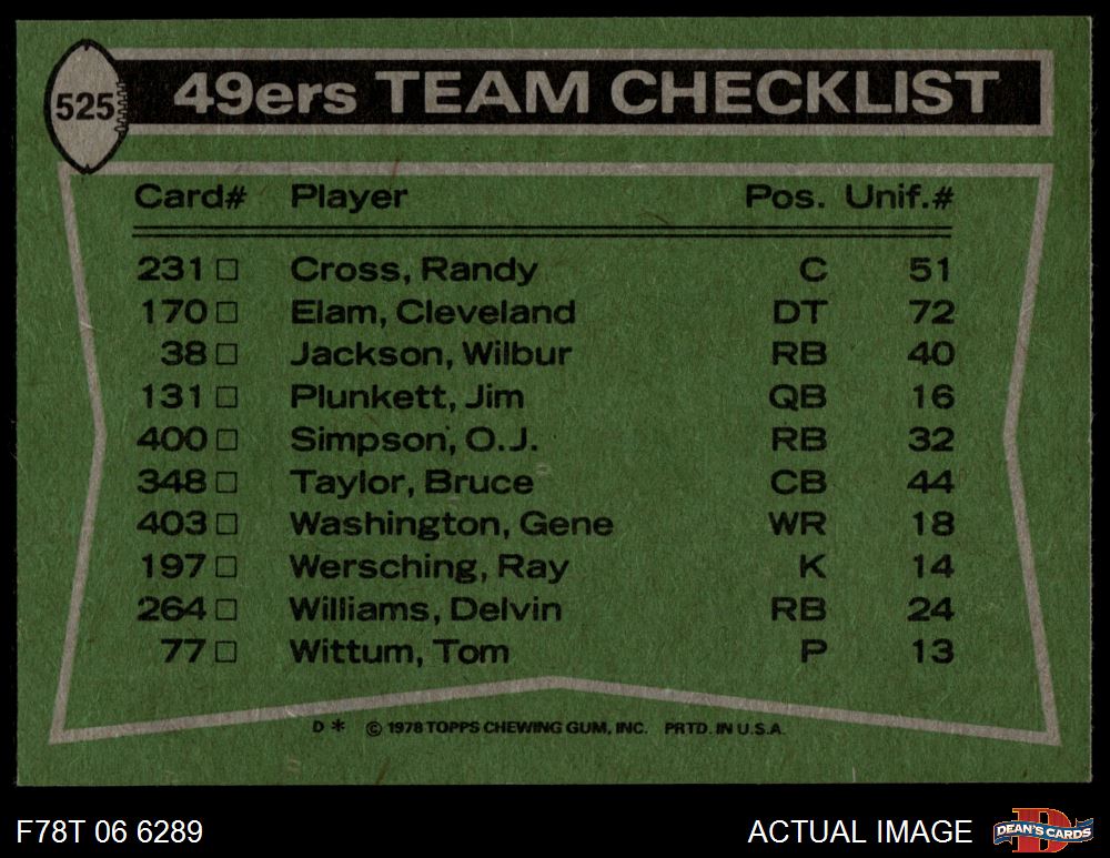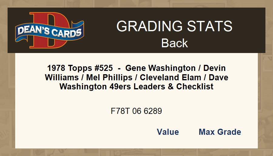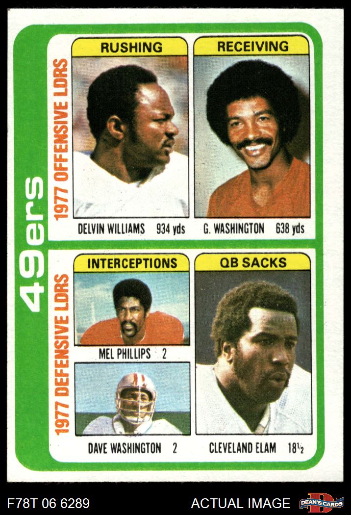 1978 Topps #525 - Gene Washington / Devin Williams / Mel Phillips / Cleveland Elam / Dave Washington 49ers Leaders & Checklist 5 - EX
