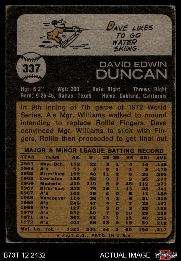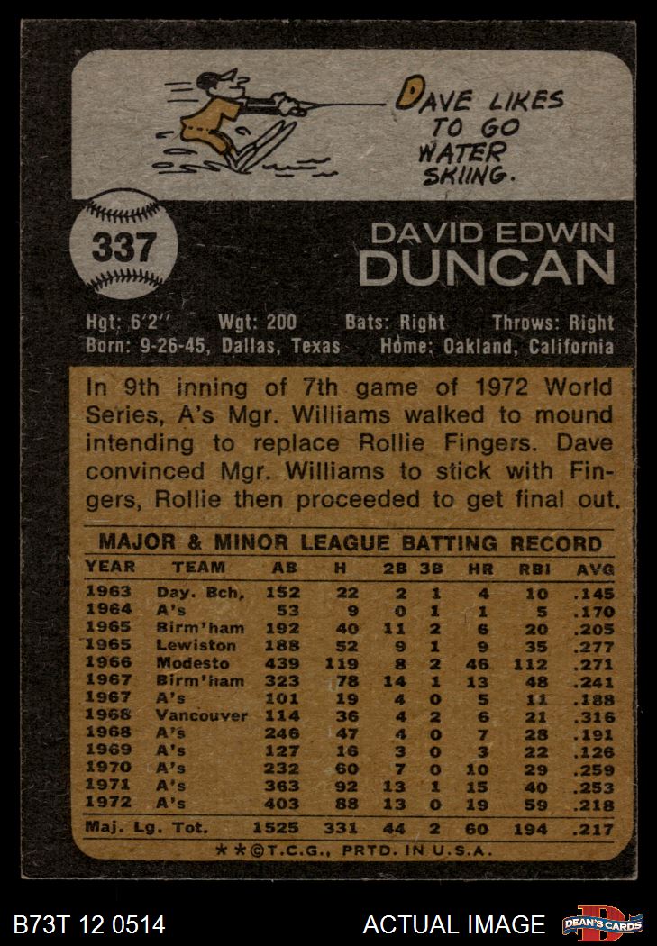 1973 Topps #337 Dave Duncan