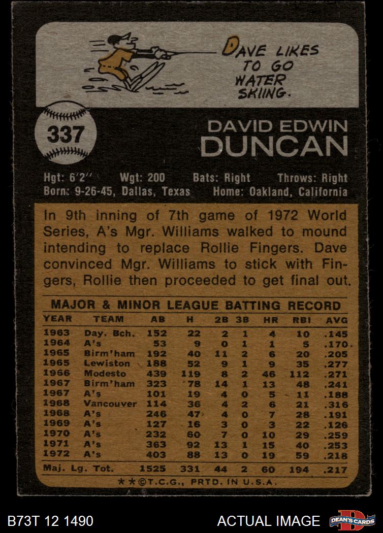 1973 Topps #337 Dave Duncan 5 - EX