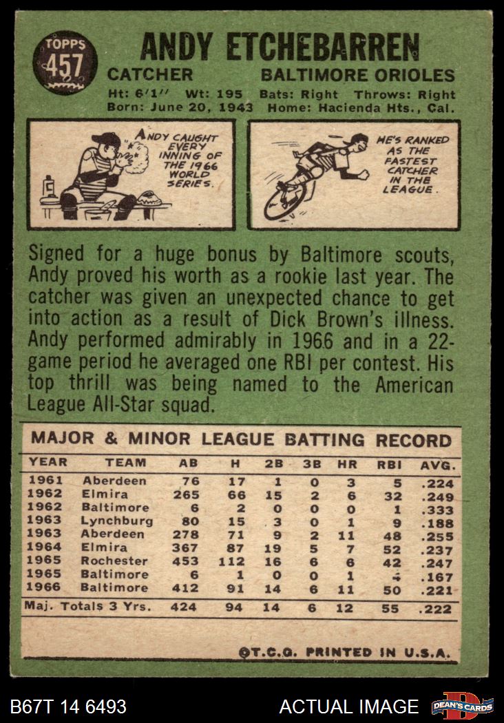 1967 Topps #457 Andy Etchebarren 4 - VG/EX