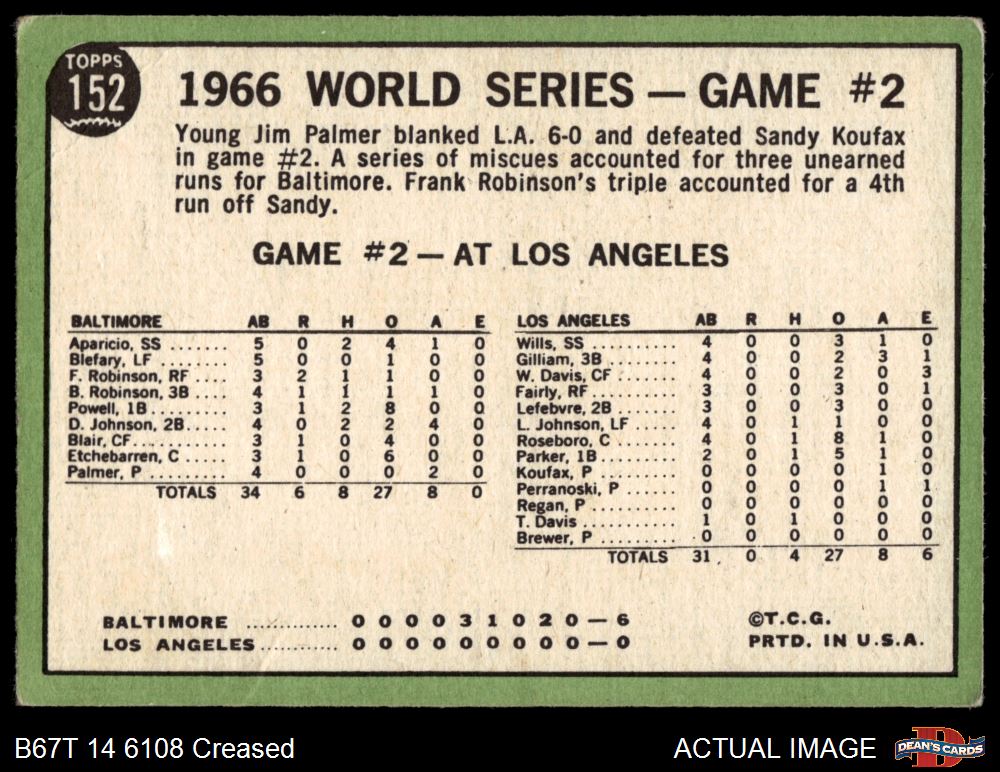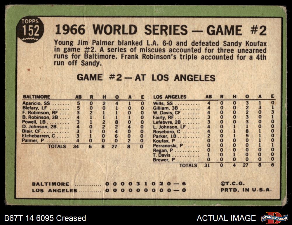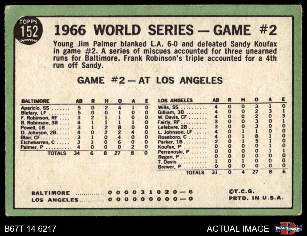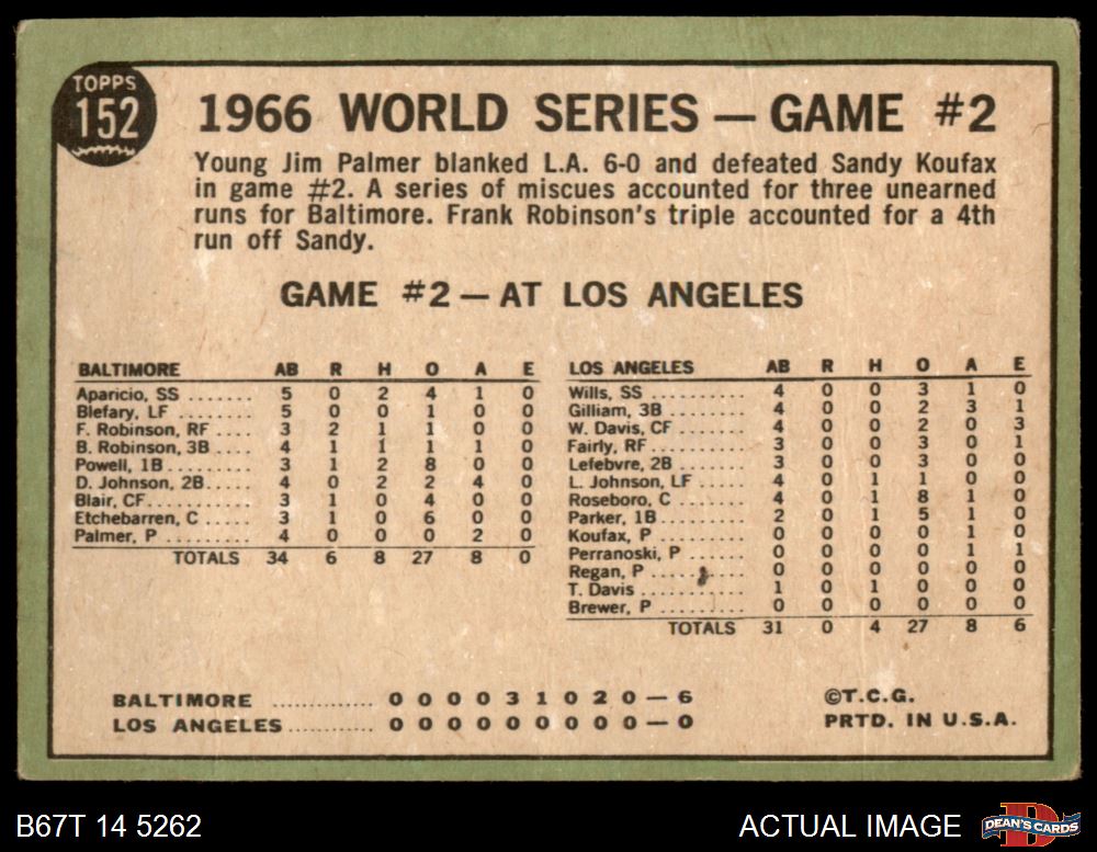 1967 Topps #152 1966 World Series - Game #2 - Palmer Blanks Dodgers