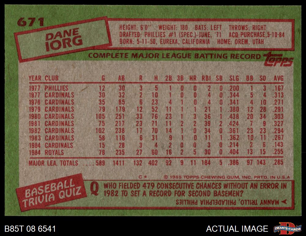 1985 Topps #671 Dane Iorg